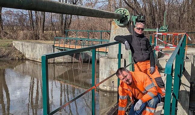 Die Fußgängerbrücke über die Piesting bzw. den Neubach bei der Moosbrunner Piestingwehr „Falln“ wird…
